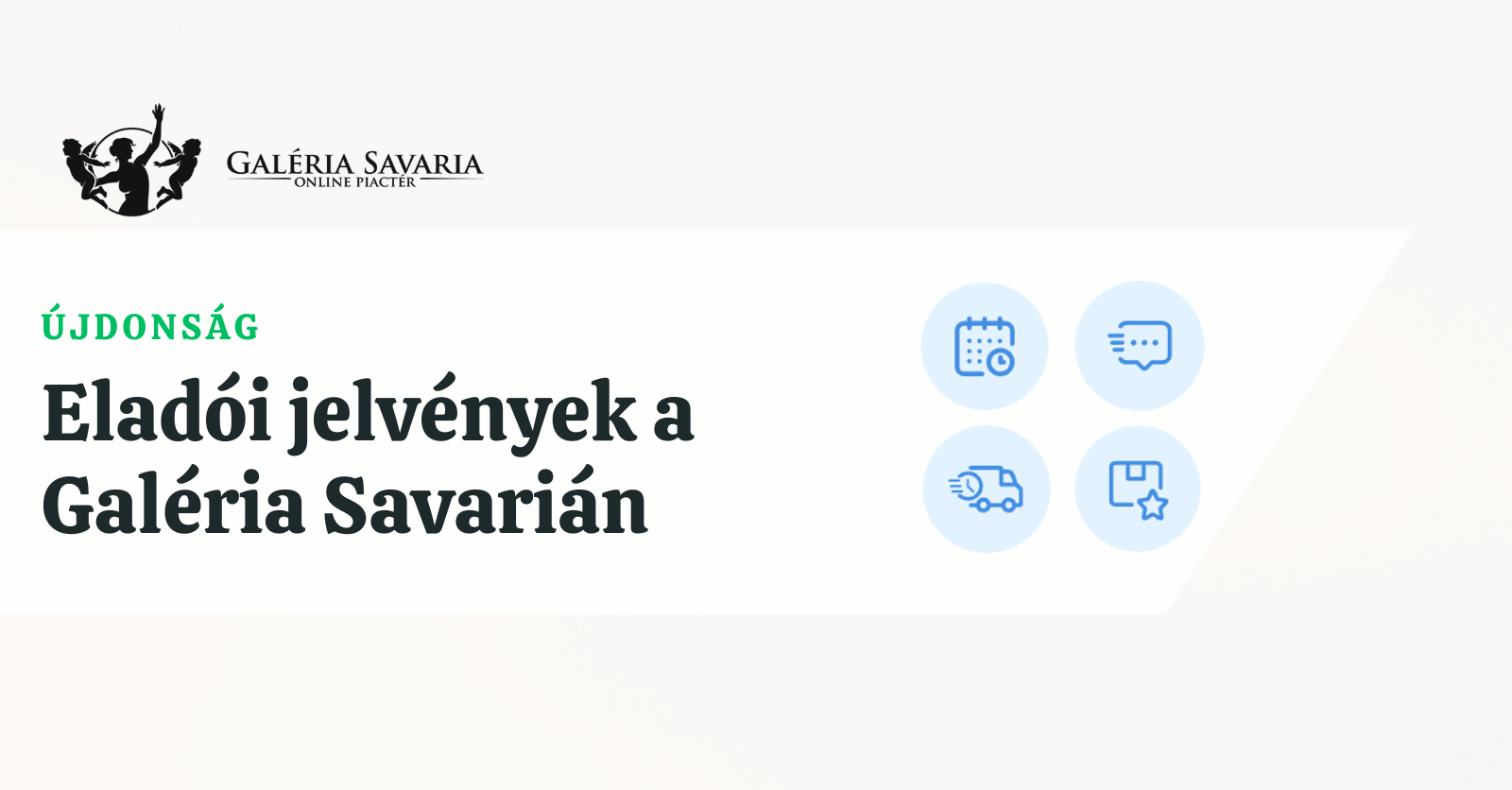 A Galéria Savariánál folyamatosan keressük azokat a megoldásokat, amelyek segítik a vásárlókat a megbízható eladók megtalálásában, és egyben ösztönzik az aktív, vevőbarát működést eladói oldalról. Ennek egyik legfontosabb eszközei a most bevezetett eladói jelvények. Az eladói jelvények olyan automatikusan frissülő vizuális elismerések, amelyek visszajelzést adnak ...